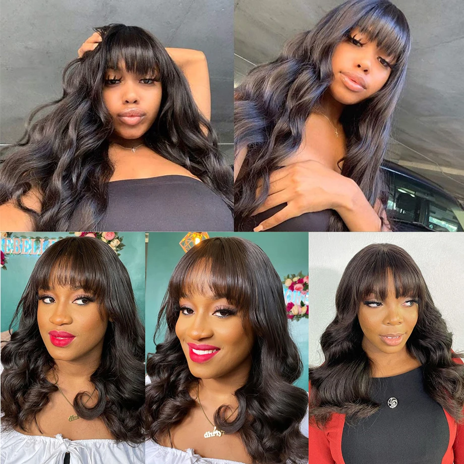 Недорогие парики из человеческих волос, парик с волнистыми волосами длиной 30 дюймов с челкой, без клея, без кружева, полностью изготовленный машиной парик для женщин