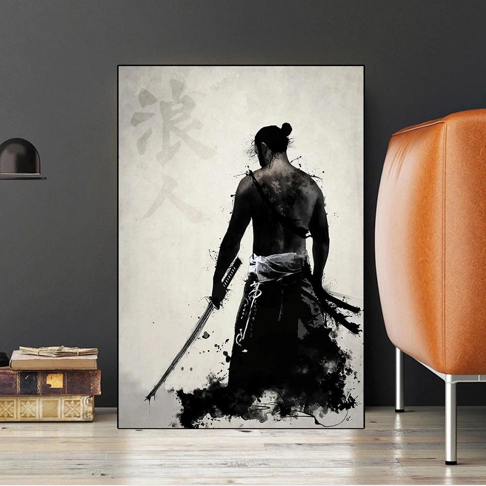 Японский ниндзя бонса Бушидо Самурай кандзи чернильный Дизайн Холст...