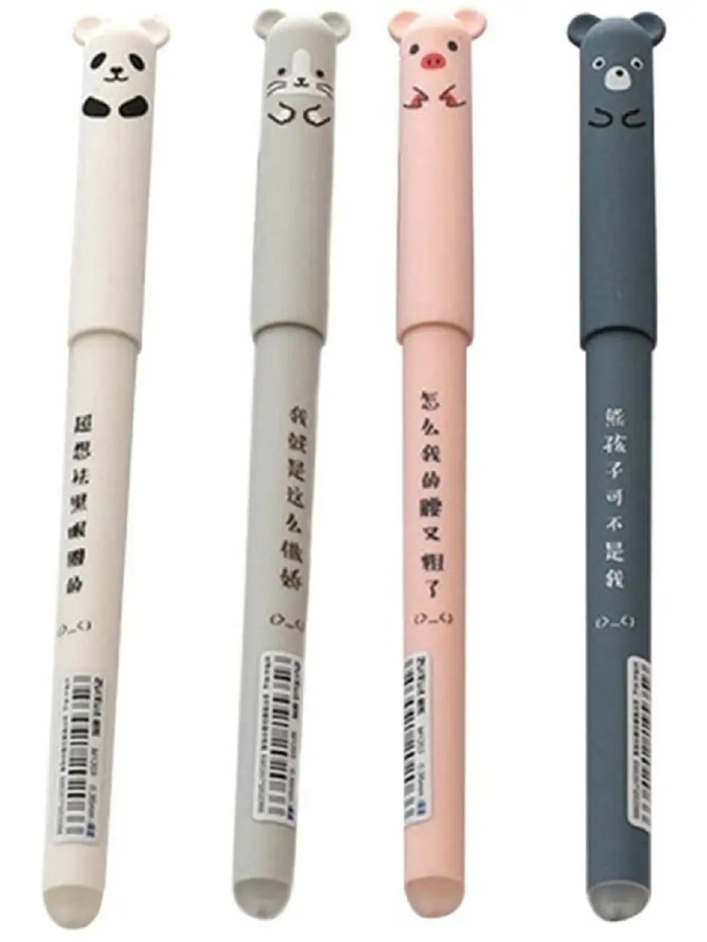 Гелевая ручка со стираемыми чернилами, 4 шт.компл. Kawaii, свинка, медведь, кошка, мышь, школьные канцелярские принадлежности, подарок, 0,35 мм, синие черные чернила