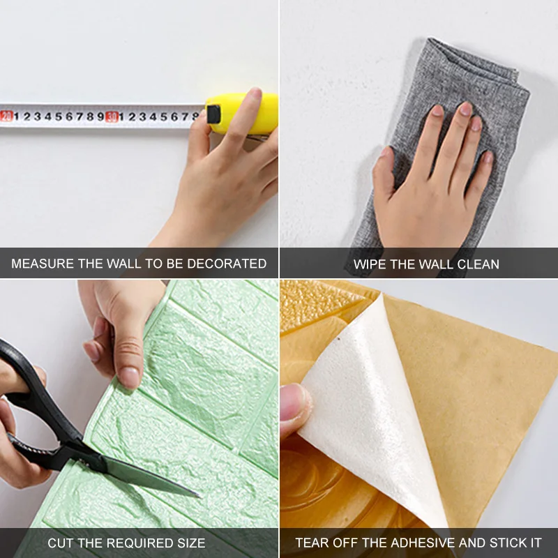 1. Измерьте стену, чтобы получить подробные размеры перед резкой.