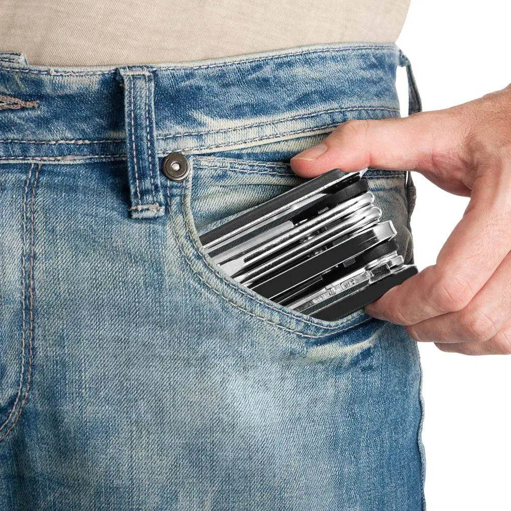 ● Полные Многофункциональные Наборы: все в одном инструменте с шестигранным гаечным ключом 8/9/10/мм, отвертка с петлей, Отвертка Phillips, Удлинительный стержень с гнездом, твердый гаечный ключ 8/10/15/мм, шестигранный ключ 2/2.5/3/4/5/6 мм, ключ, дюймовый стандарт● Полезный и маленький: набор инструментов для ремонта мотоциклов поможет вам решить большинство проблем для вашего велосипеда, когда вы едете на улице, Супер Легкий и маленький, чтобы положить в сумку или карман, легко носить с собой● Хорошее качество с прочностью: изготовлен из высококачественной углеродистой стали и АБС-материала, профессиональная работа, модный дизайн, прочный, прочный и более эффективныйБыстрое использование, легко собрать: специальная конструкция для быстрого извлечения и использования набора инструментов для ремонта, легко собрать и положить все предметы вместе● Портативный: быстрый и легкий инструмент, бесплатная установка и удаление