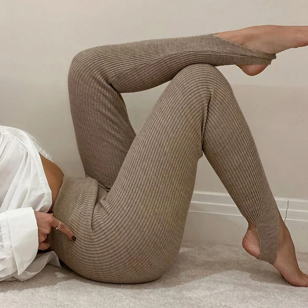 Бежевые трикотажные леггинсы в рубчик 2021, женские хлопковые базов...
