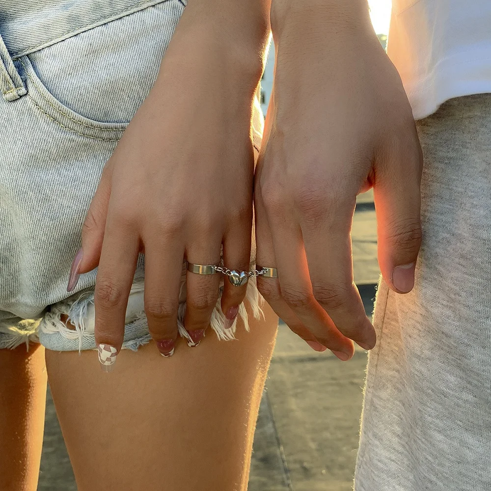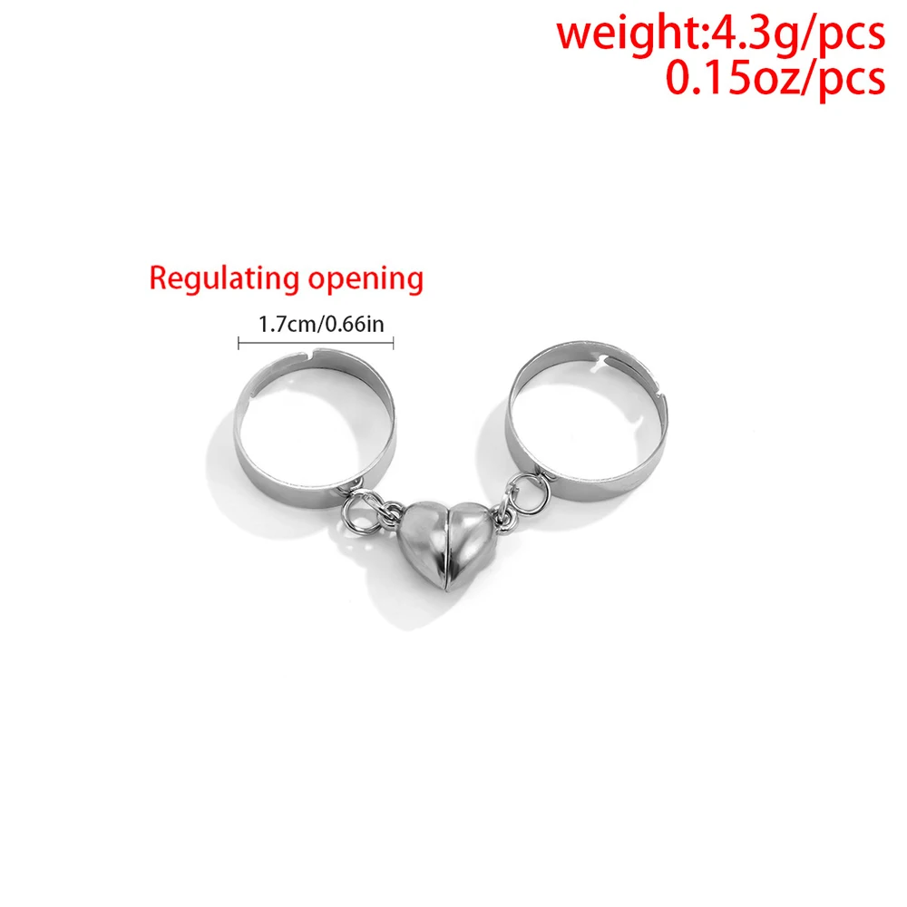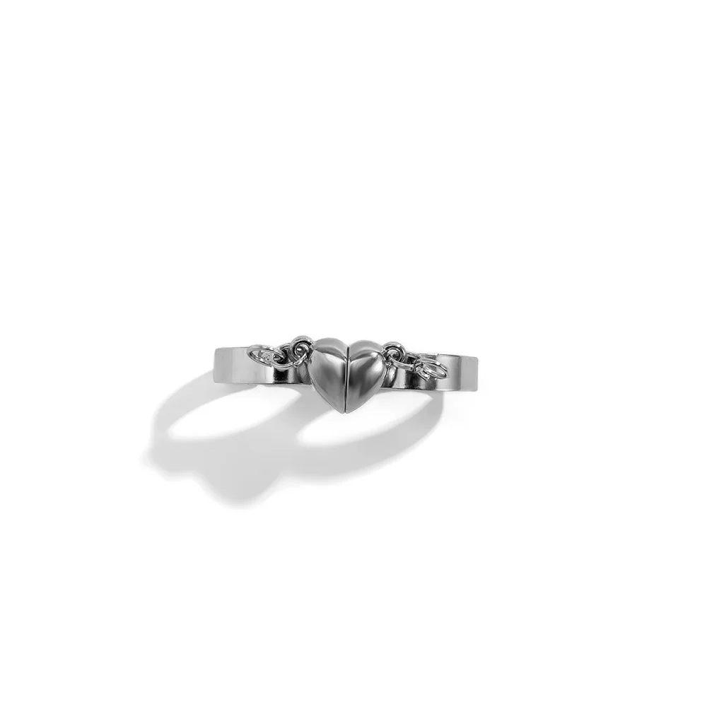 Модные серебряные кольца для женщин и мужчин, комплект регулируемых магнитных колец в форме сердца для влюбленных, свадебные ювелирные изделия дружбы 2022