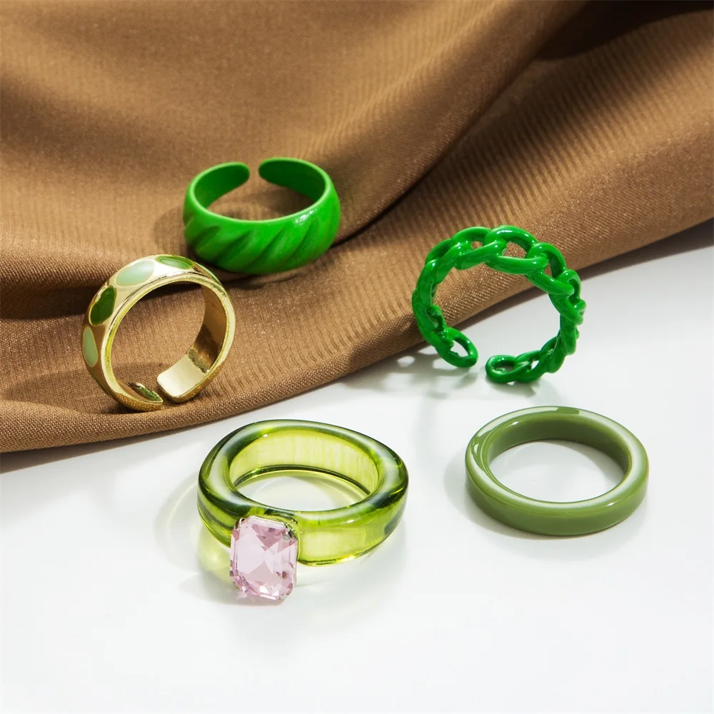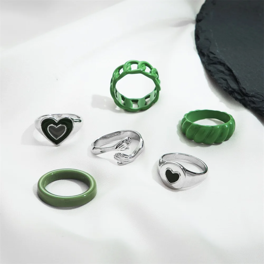 6 шт.компл. эмалированные зеленые кольца, наборы для женщин, кольцо...