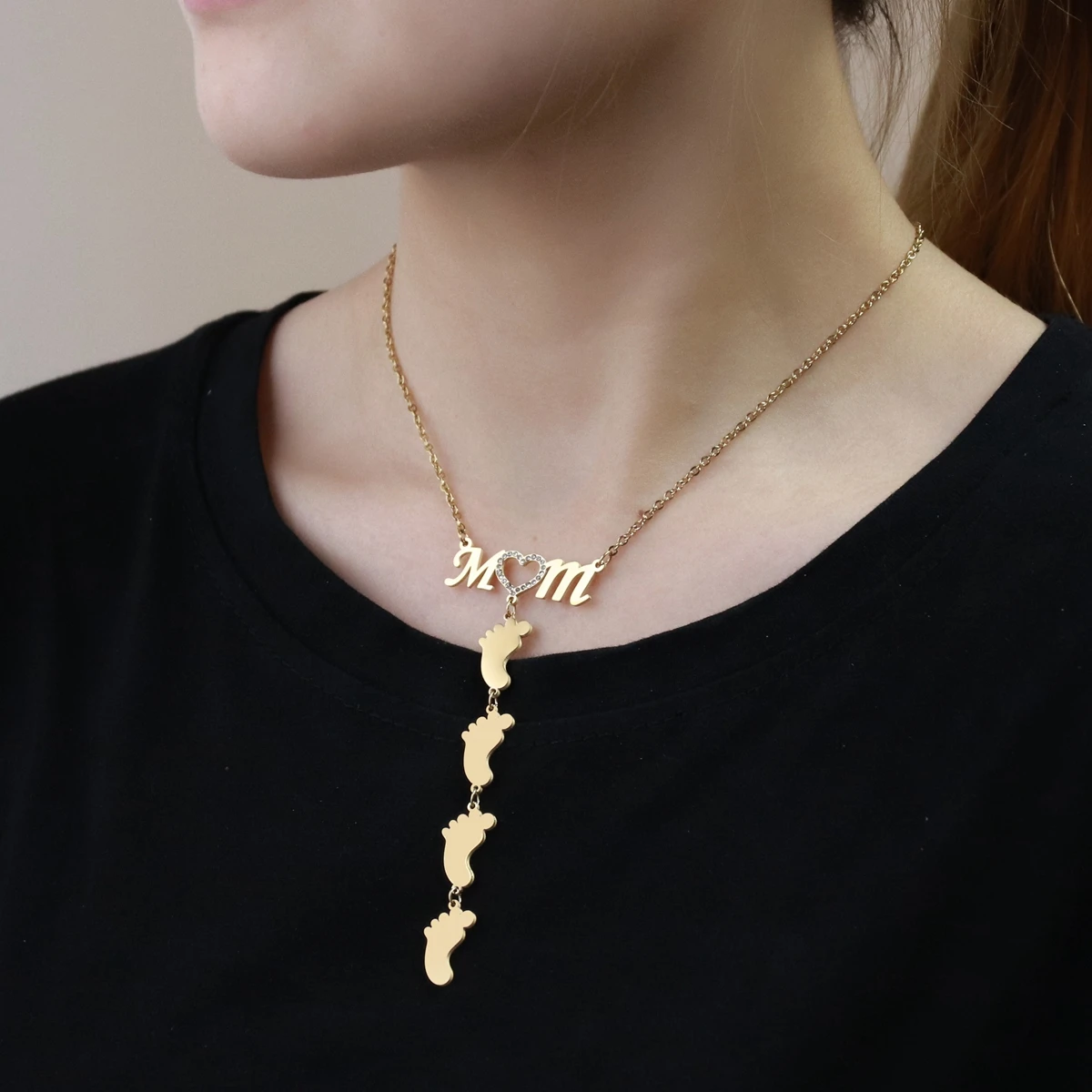 Shape/PatternEngrave Mom Crystal Heart Names Necklace