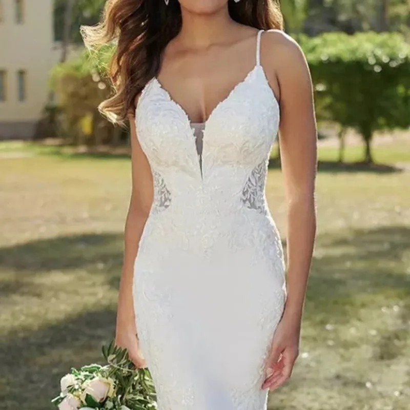 Свадебное платье с юбкой годе, на тонких бретелях, с открытой спино...