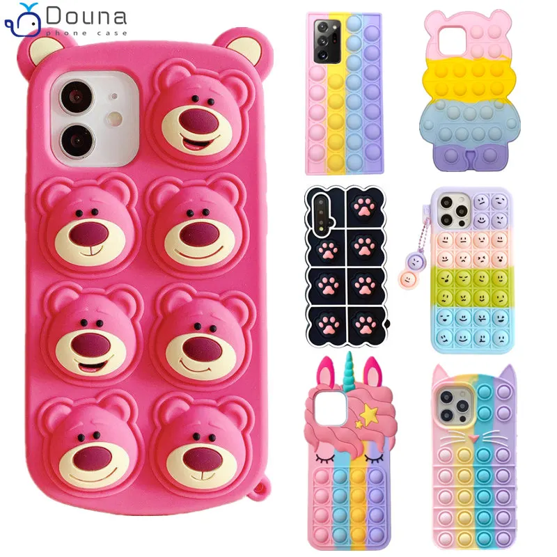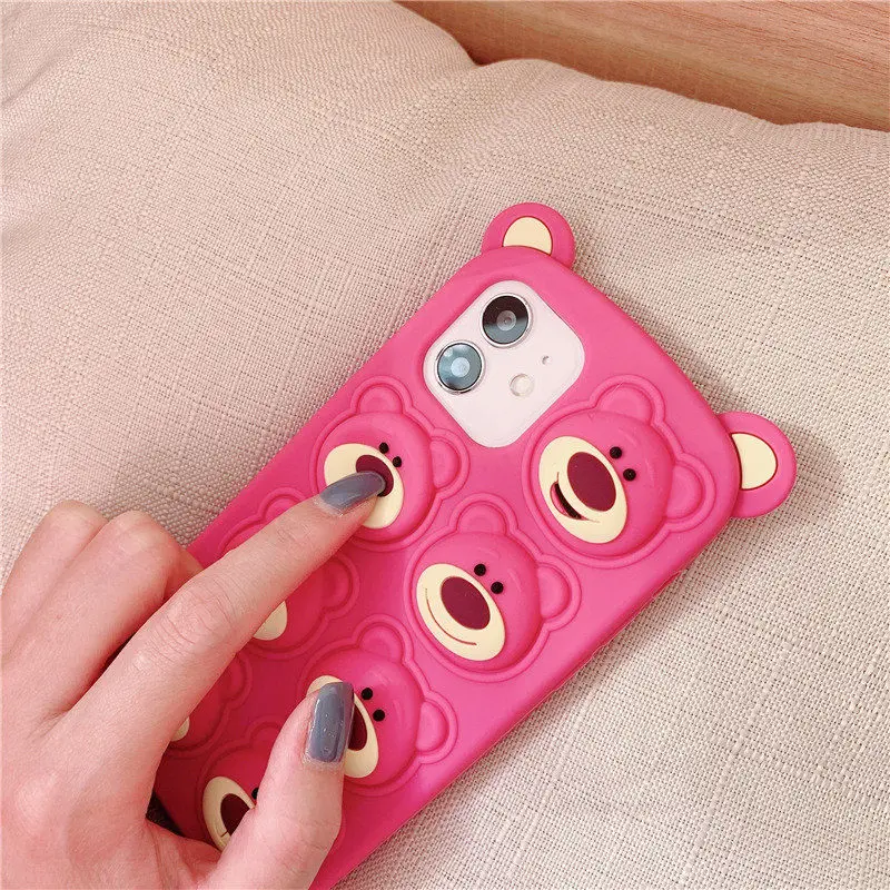 3D-чехол с милым мультяшным медведем и подвеской для телефона Poco M4 M3 X3 GT Xiaomi Redmi 9 9A 9C Note 11 10 9T 8 7 Pro Pop пузырьковый чехол