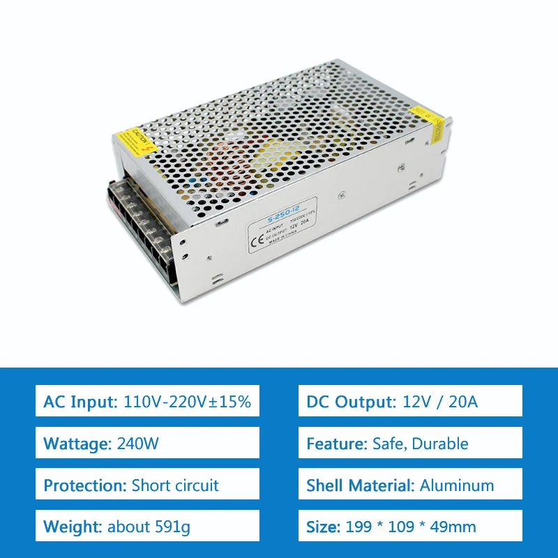Адаптер питания для светодиодной ленты, 110-220 В переменного тока в 12 В, 20 А
