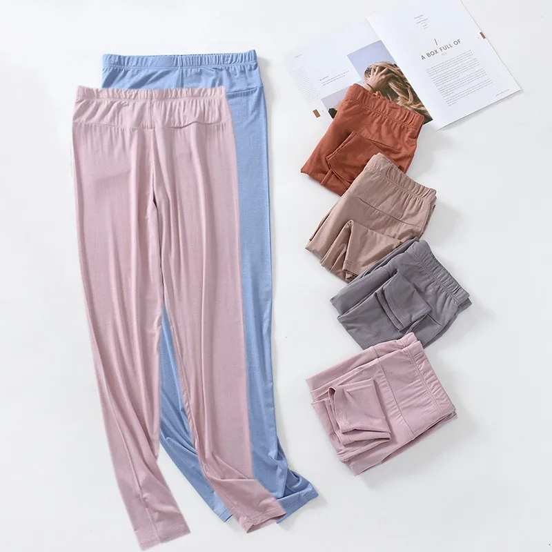 Весенне-осенние женские пижамные штаны Fdfklak с эластичным поясом, Прямые леггинсы, домашние брюки, одежда для сна из вискозы, брюки