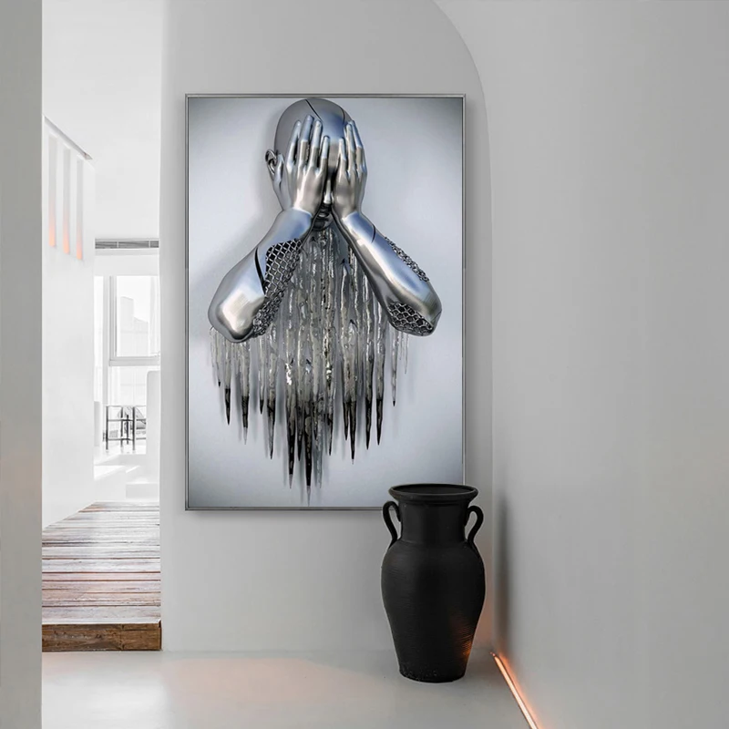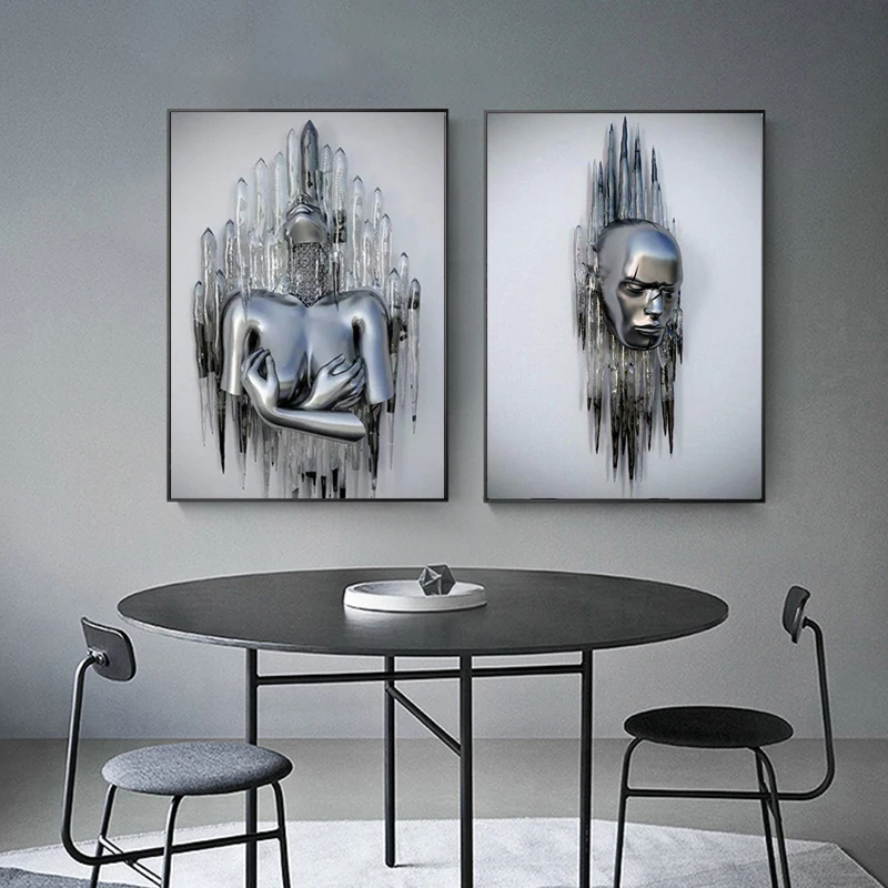 Металлическая сетка Статуя Пара холст печать картина Серебряный сер...