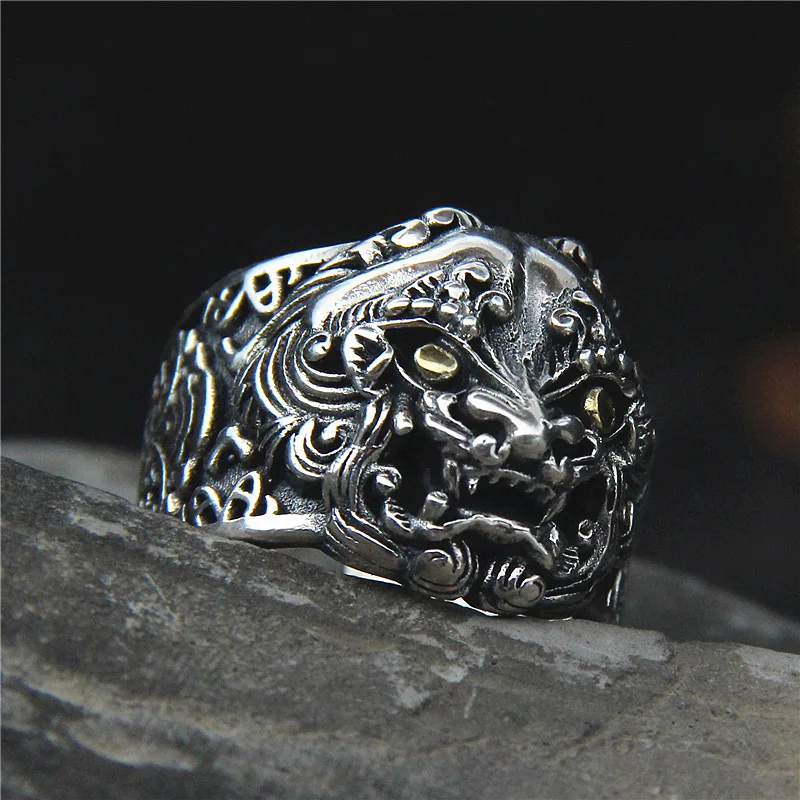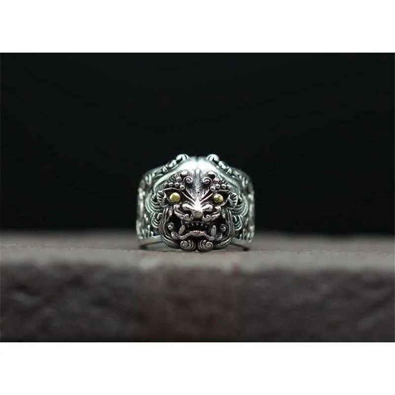 Открытое кольцо Pixiu в стиле унисекс, преувеличенное властное мужское украшение в ретро стиле амулет китайского чудовища (мужские ювелирные изделия Recom Размер 6-9)