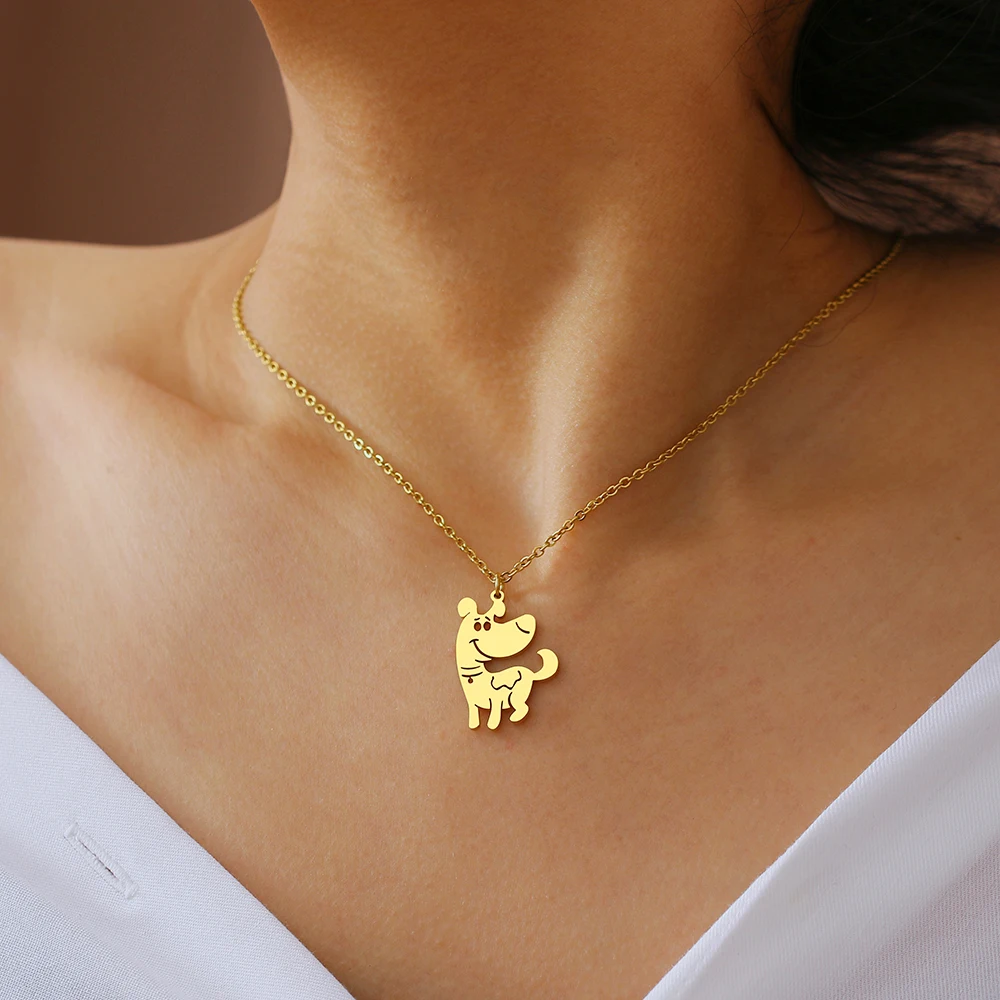 Ожерелья из нержавеющей стали с подвеской в виде игривой собаки и животного, Очаровательная цепочка, модное ожерелье для женщин, ювелирное изделие, подарок для друзей, колье