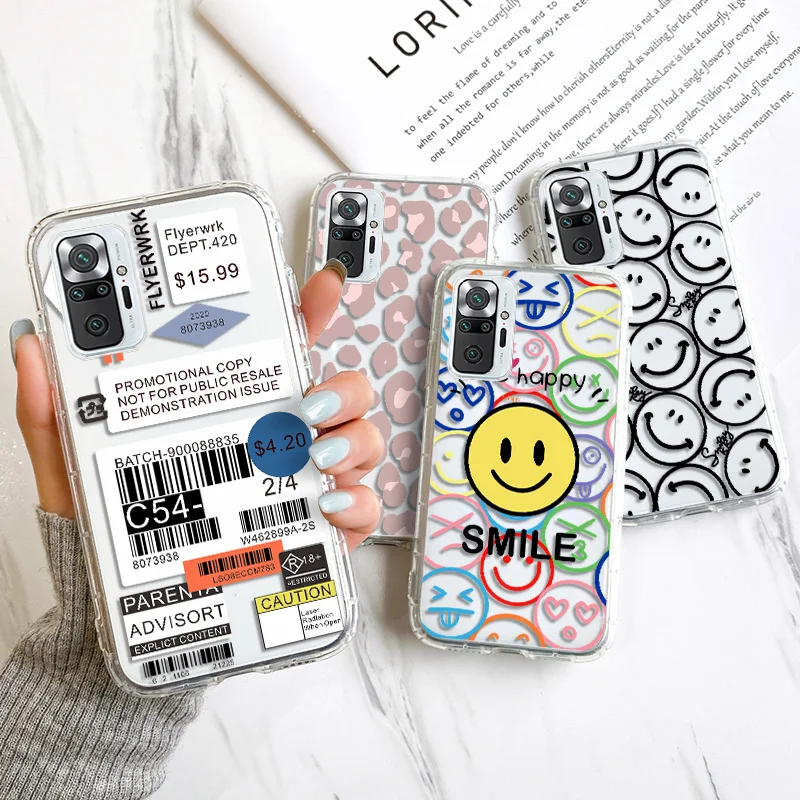 Чехол для Redmi 9, чехол для Xiaomi Redmi Note 9, 10, 11 Pro, силиконовый чехол, чехол для Redmi Note 8 Pro, 7, 8T, 7S, 9S, 10S, 7A, 8A, прозрачные чехлы с этикетками с улыбкой