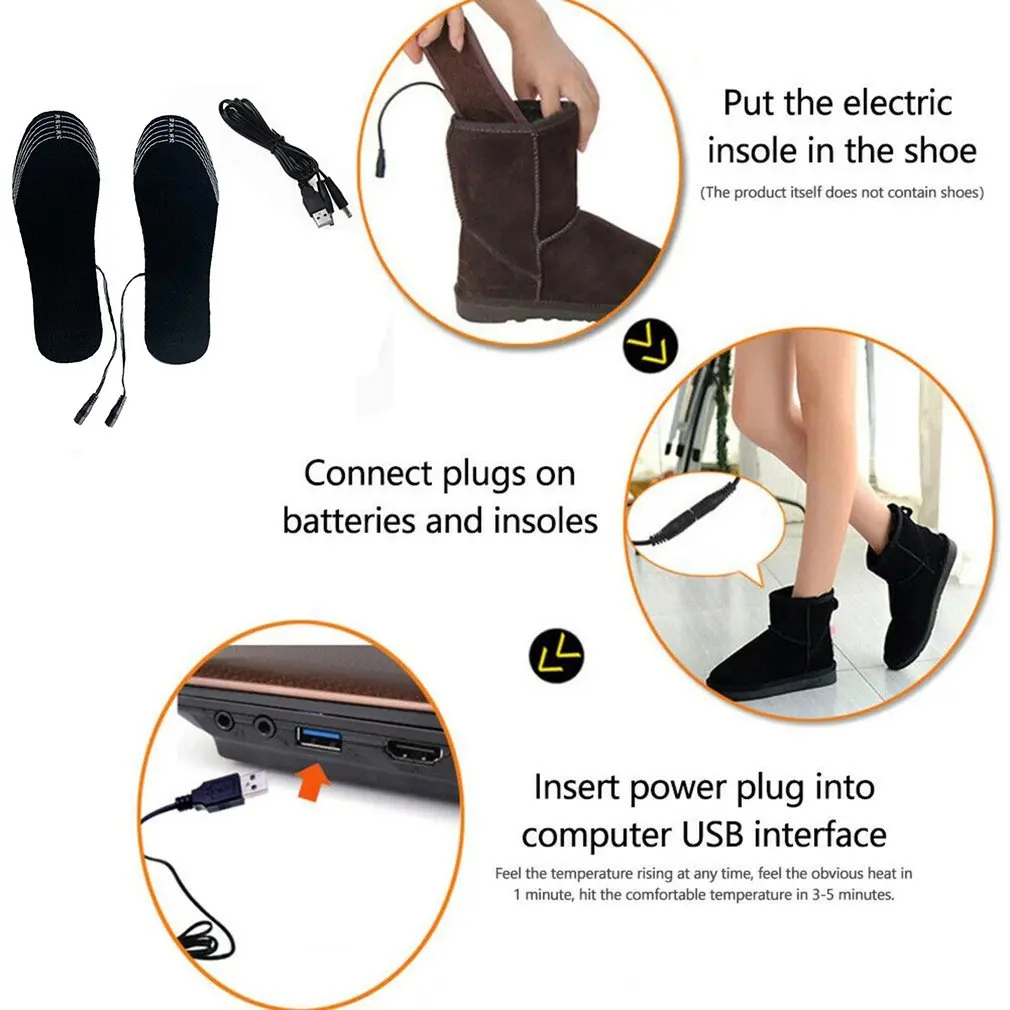 Стельки с подогревом USB, теплые моющиеся, с подогревом, унисекс, WJ014