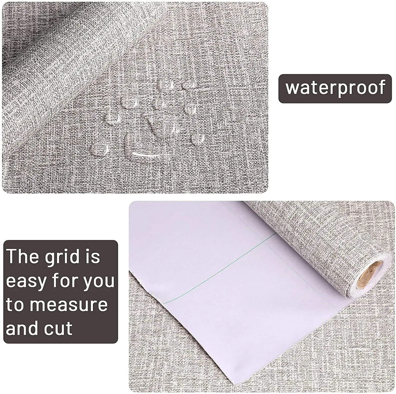Льняная текстурированная самоклеящаяся настенная бумага Intage для гостиной, спальни, настенные наклейки, виниловая Водонепроницаемая контактная бумага, домашний декор