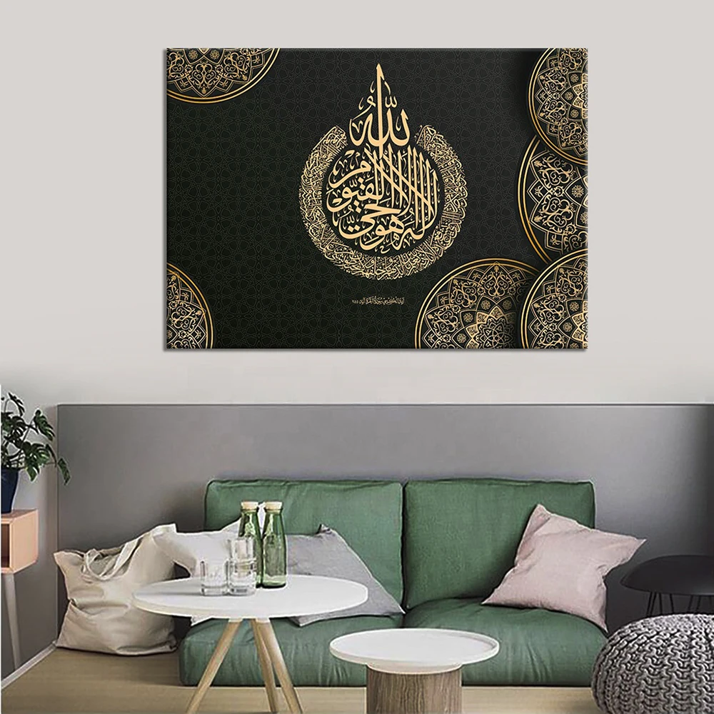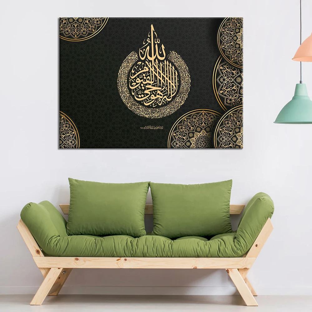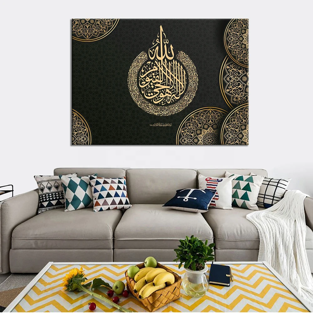 Роскошное исламское настенное искусство золотые мусульманские украшения домашние настенные картины Аллах Золотые религиозные картины на холсте
