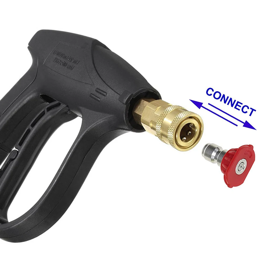 JUNGLEFLASH очиститель высокого давления водяной пистолет Автомойка мыла пены распылитель сопла быстрого выпуска автомобильные аксессуарыОсобенности:Новинка и высокое качествоУстойчивая к ржавчине и коррозии конструкцияЛатунный Стандартный садовый шланг муфтаИдеально подходит для электрических моек под давлением холодной водыЕго можно использовать как пистолет для мытья воды, садовые инструменты для орошенияИдеально подходит для полива сада, орошения сельского хозяйства, мытья автомобилей, бытовой очистки и так далееПримечание: давление во многом зависит от давления воды в вашей системе воды и шланге, Распылительная насадка только повышает это давление до ограниченной степени.Характеристики:Материал: пластик (корпус) + медь (Насадка)Размер: см. ИзображениеДавление воды: высокоеМаксимальное давление 100 бар-200 бар (1400 psi - 3000 psi)Максимальная температура 60 градусов Цельсия/140 °F; Работа: 150 бар/2174PSIПодходит для бутылки: 1/4 "быстроразъемный фитингПосылка включает в себя:1 х водяной пистолет высокого давления5 x соплоСвоевременная доставка:1. Гарантированный товар будет отправлен в течение 3 дней. Обычно товар будет отправлен на следующий день после оплаты.2. Гарантированный товар будет доставлен в течение 60 дней. Обычно Доставка осуществляется в течение 2-5 недель. (Для Бразилии гарантированное время составляет 90 дней, а расчетное время доставки-5-8 недель).Защита покупателя:1. Полный возврат средств, если вы не получили свой заказ.2. Полный или частичный возврат, если товар не соответствует описанию.3. Все наши продукты были 100% проверены и протестированы перед отправкой. Пожалуйста, будьте уверены в покупке. Мы предлагаем нашим клиентам самые конкурентоспособные цены и высокое качество продукции.Важное примечание:Выберите подходящий адаптер для мойки под давлением. Пожалуйста, проверьте размер адаптера и убедитесь, что он подходит для вашей машины. Мы не несем никакой ответственности за несовместимость адаптера. Если вы не уверены, пожалуйста, свяжитесь с нами и отправьте нам фотографию вашего пистолета и копья, мы поможем выбрать подходящий адаптер.