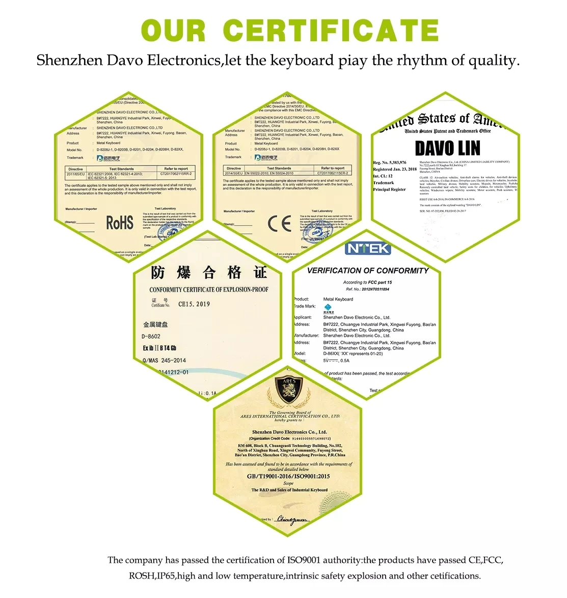 Это профессиональная промышленная мембранная клавиатура с сенсорной панелью. Взрывозащищенный с интерфейсом USB, подключи и работай. IP68 Водонепроницаемый для легкой очистки. Полностью моющаяся. Алюминиевый чехол с герметиком. Он не имеет щелей, чтобы скрыть бактерии, пыль и т. д. идеально подходит для медицинской, фармацевтической или даже тяжелой нефтяной промышленности, угля и шахты из-за его надежного дизайна. Можно управлять перчатками. Может быть разработан на разных языках.