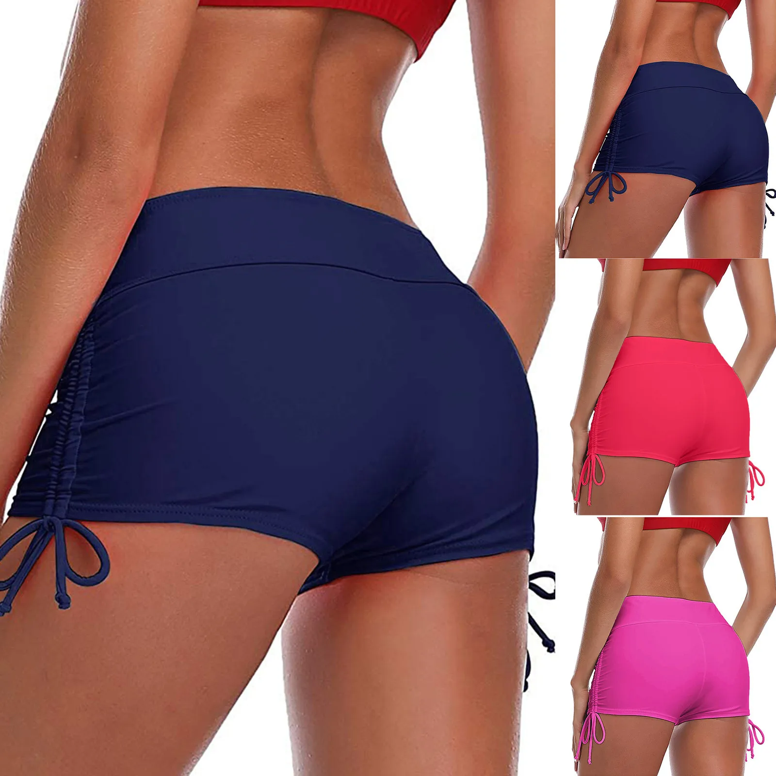 【Особенности】Это Однотонные купальные шорты с завязками на талии; Очень пикантный кружевной вырез Простая однотонная подкладка. Подходит для всех купальных топов, элегантный и Мода!.