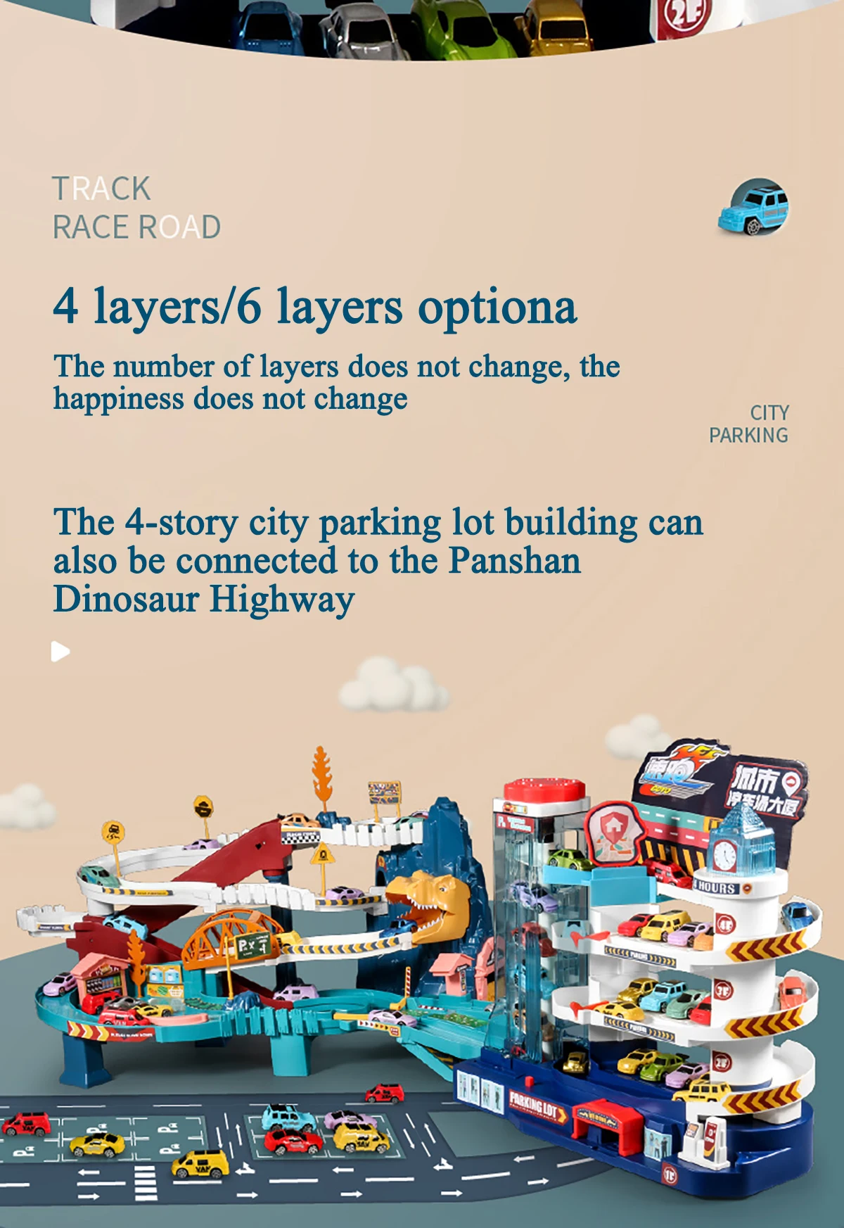 Городские игрушки с электрическим треком, литой динозавр, стоянка, ...