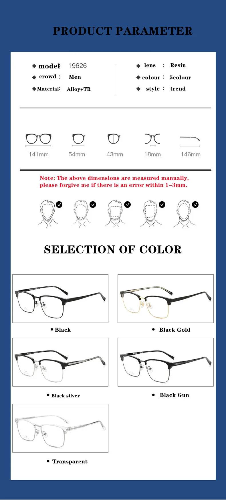 Frame colorBlack/Black Gun/Black Silver/Black Gold/Transparent