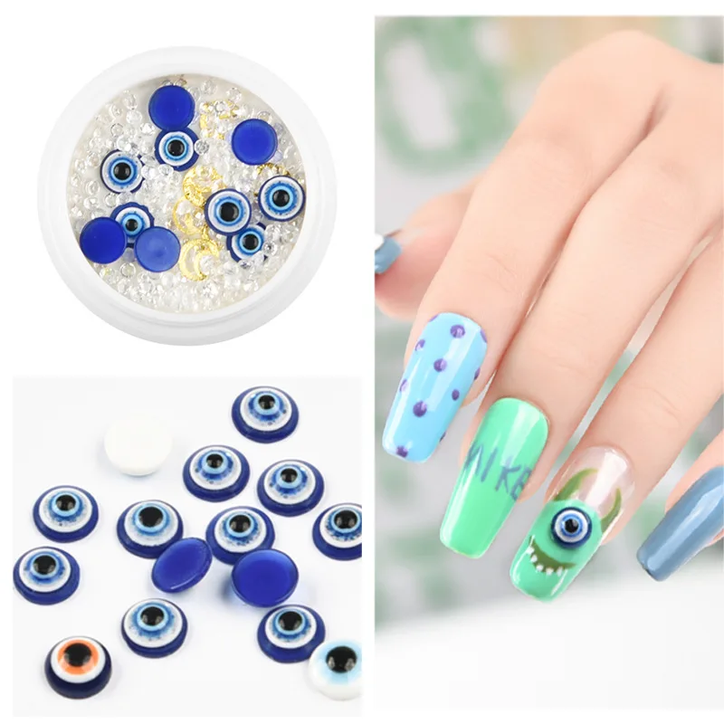 1 коробка 3D сглаза ногтей художественные талисманы смолы луна бусины для женщин и девочек акриловые Стразы для ногтей синий глаз Дизайн Маникюрные украшения A53