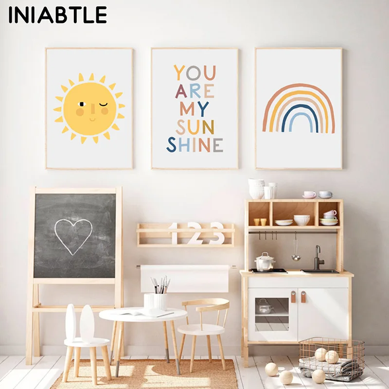 Солнце Радуга плакаты вы мой Солнечный свет питомник стены искусства ребенка Печать холст Картина скандинавский мультфильм картина Детская комната Декор