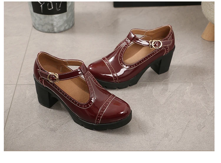 Женские винтажные мягкие туфли на высоком каблуке в японском стиле
