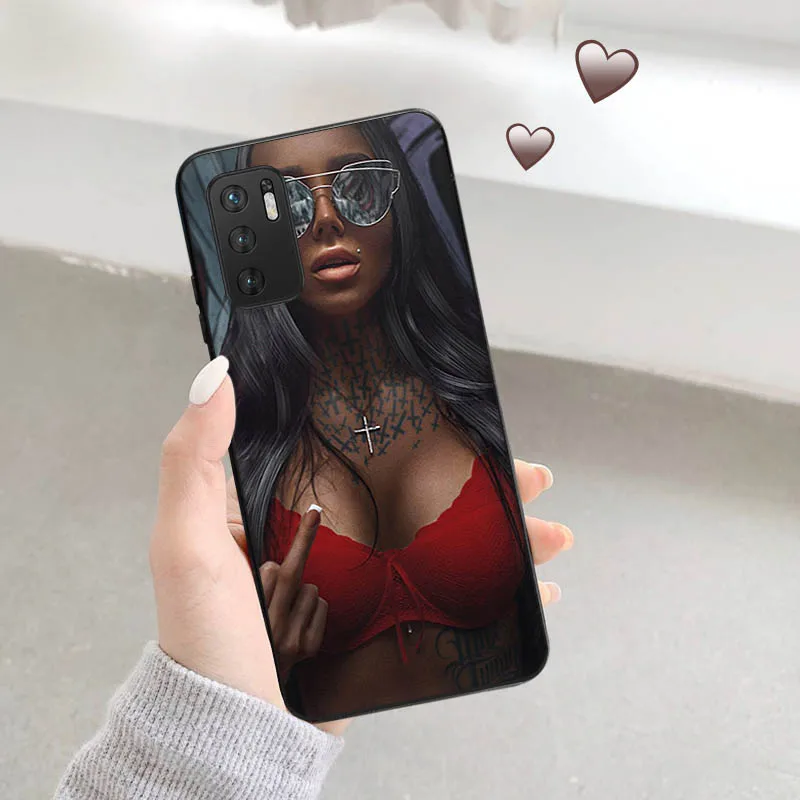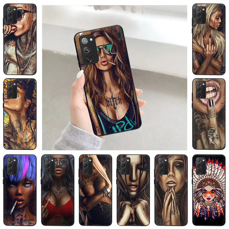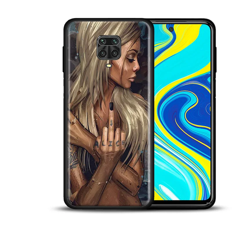 Телефонный чехол для Xiaomi Redmi Note 11 Pro 10 5G 9C 9 9S 7a 9A 8 8A 8T 9T 8Pro Max сексуальный рукав с татуировкой девушка черные мягкие чехлы Funda