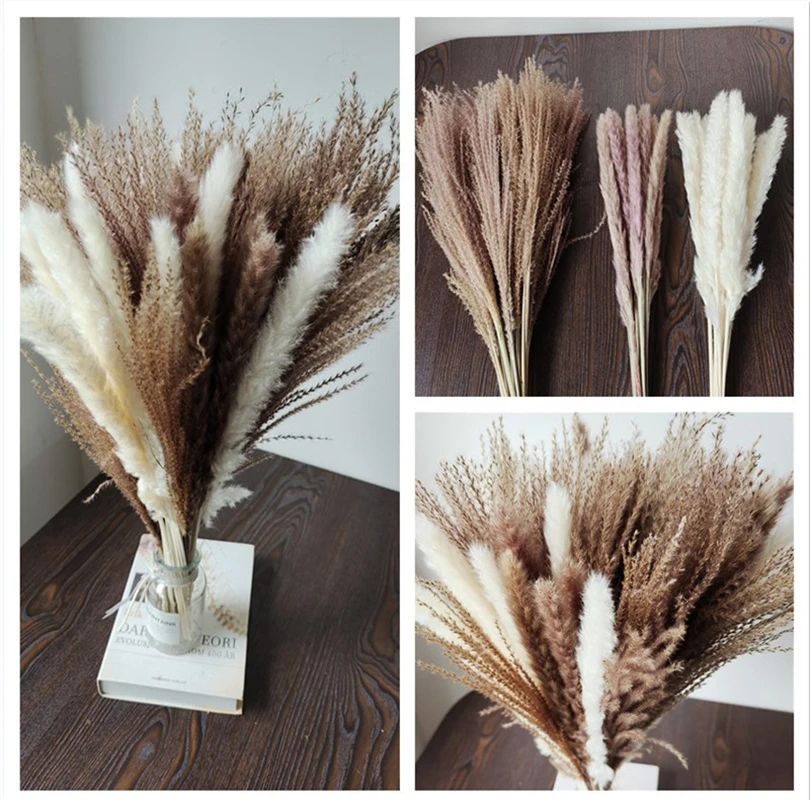 Тростник 45 см, пампасы, пшеничные уши, кроличьи хвосты, трава, Натуральные сушеные цветы, искусственные цветы для вечерние, богемный дом, Blume