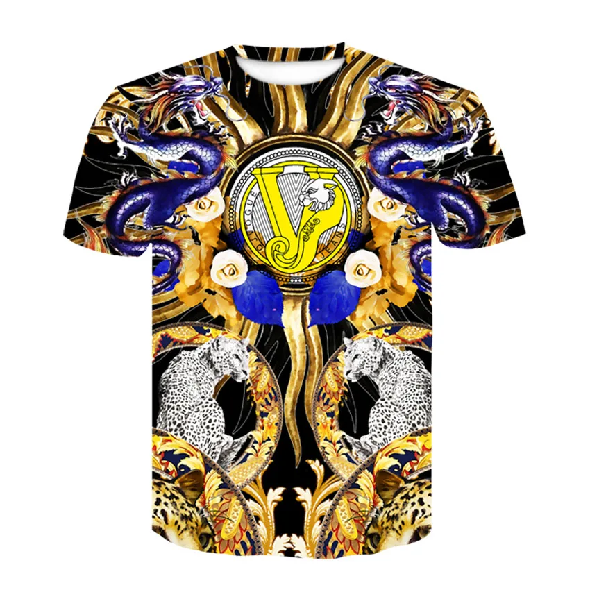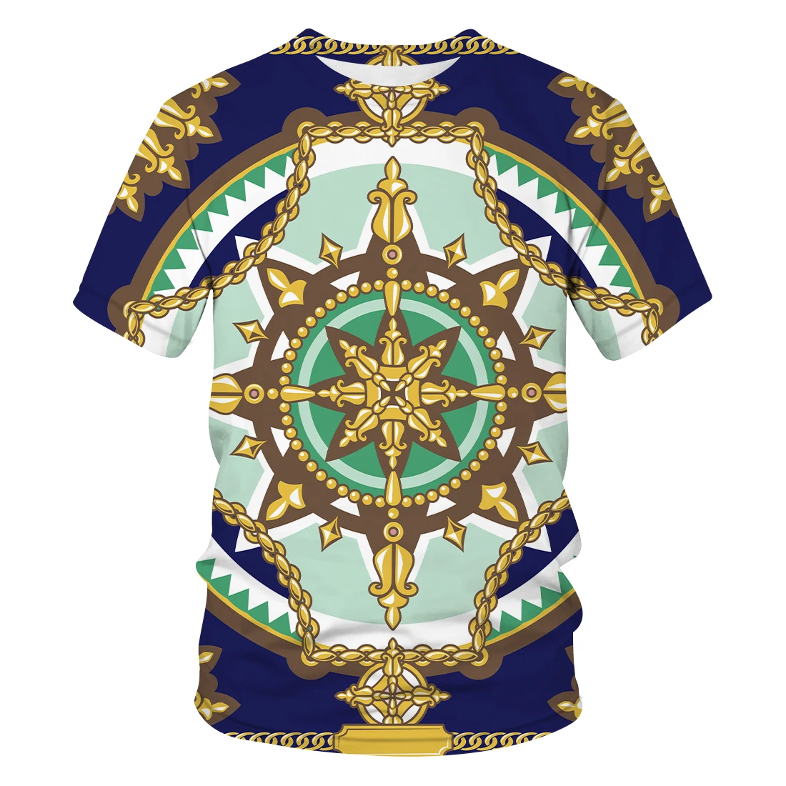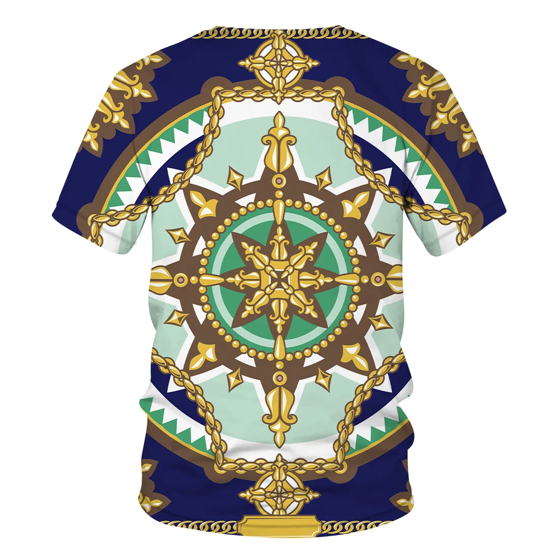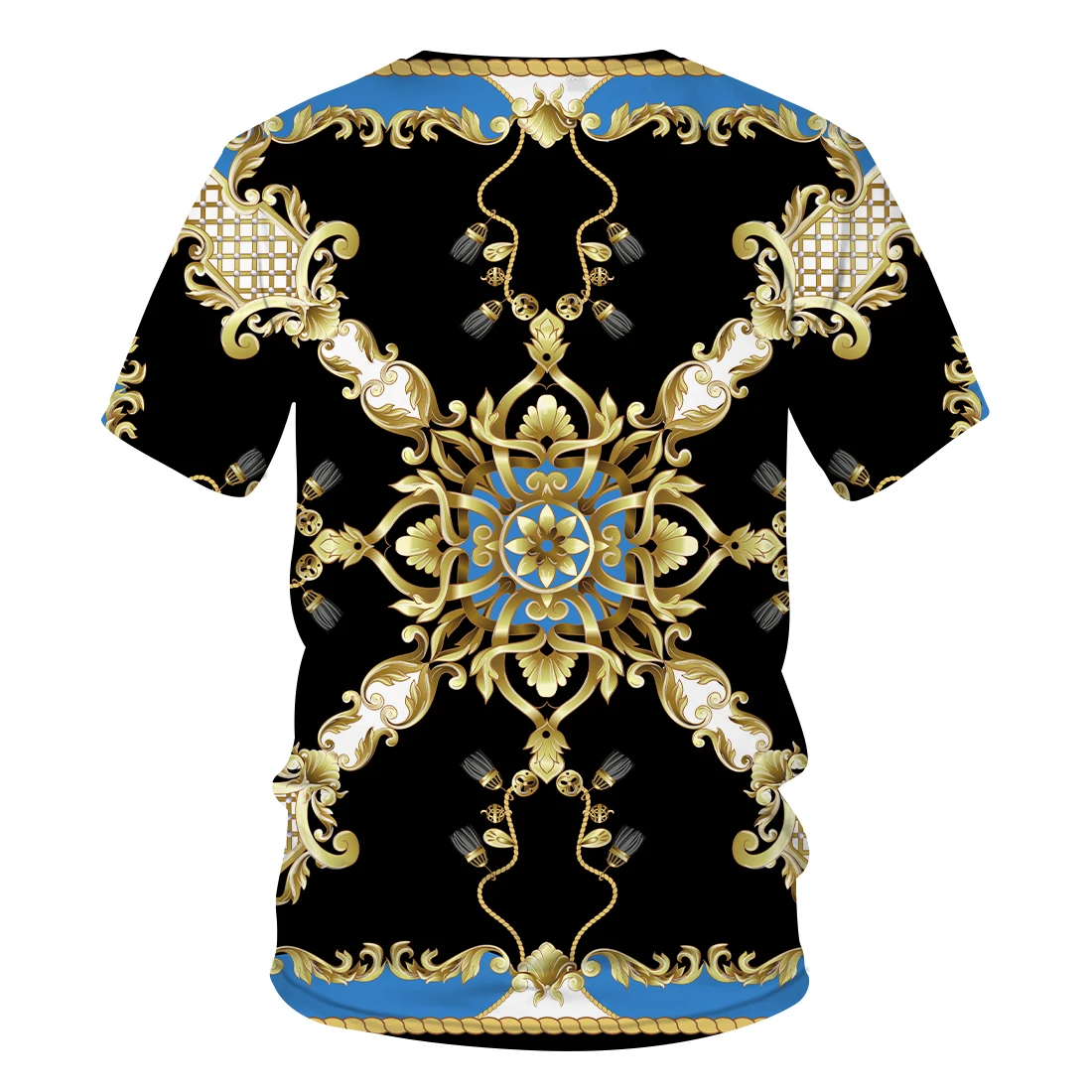 Футболка Мужскаяженская с цифровым 3D-принтом, брендовая тенниска в стиле барокко, брендовая рубашка с винтажным роскошным королевским принтом золотых цветов, лето