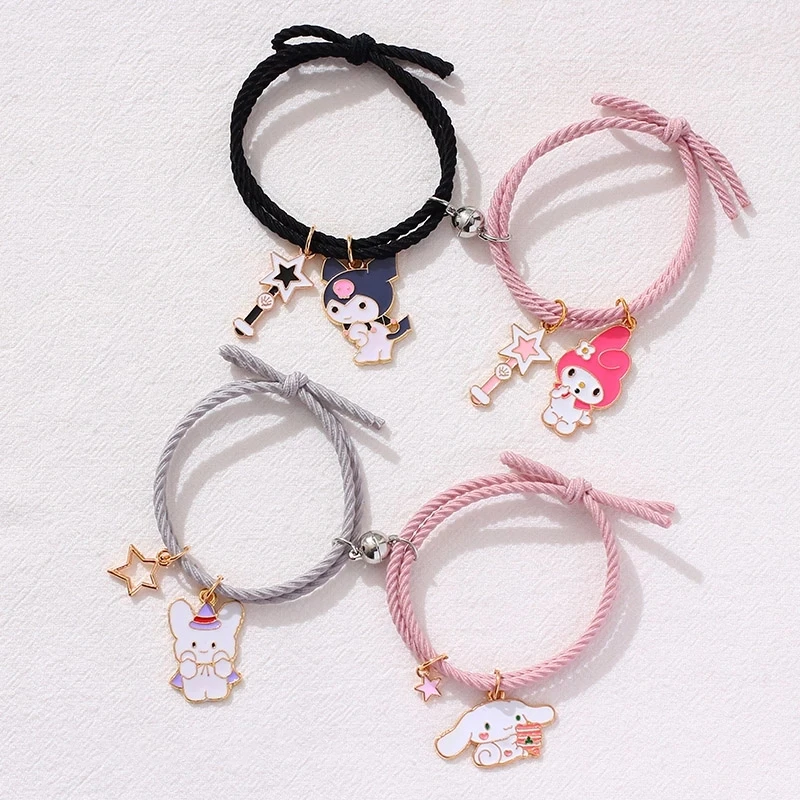 2 шт.компл. Магнитный привлекательный браслет для пар, милые Мультяшные очаровательные ювелирные изделия, регулируемые эластичные веревочные браслеты, подарок для любимых женщин и мужчин