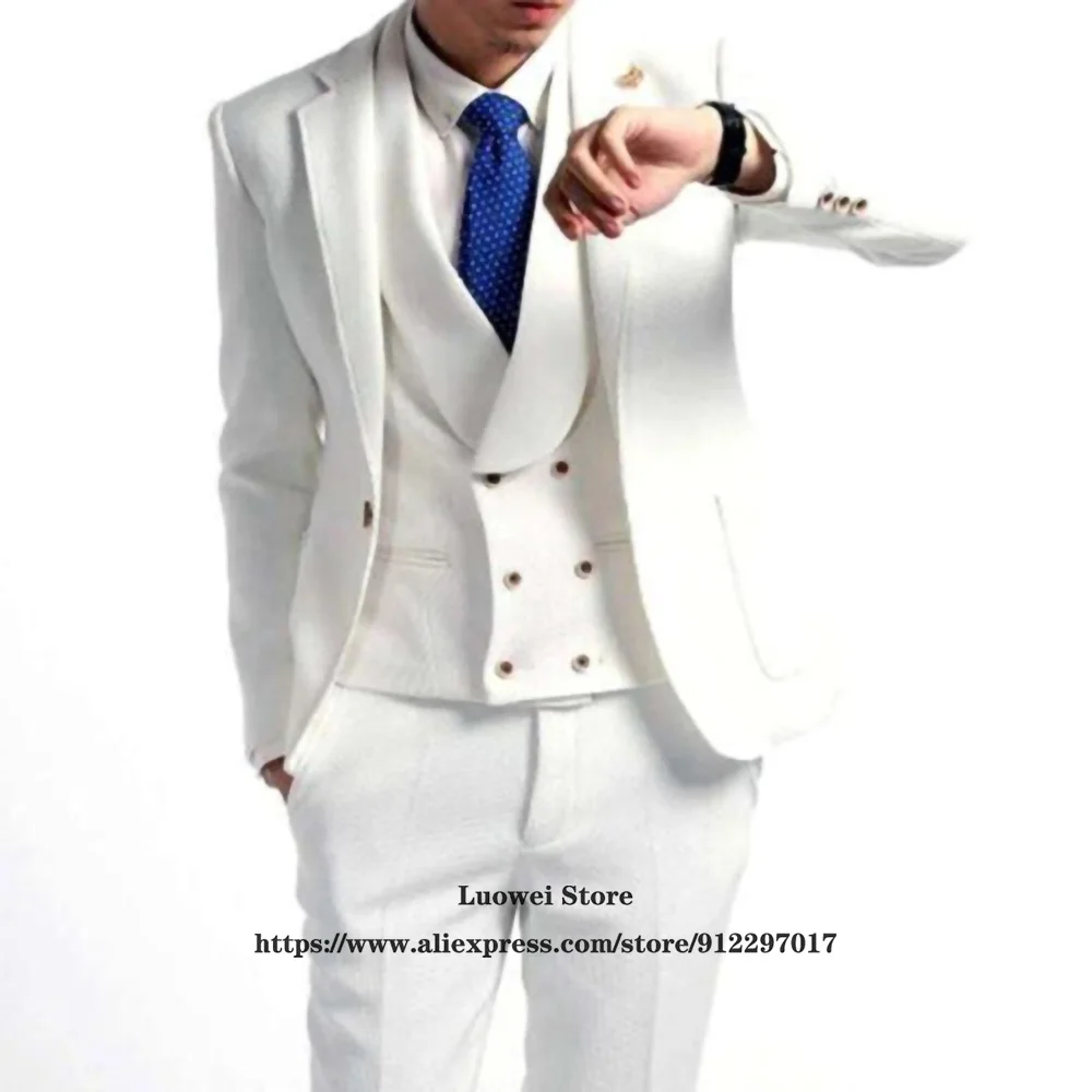 Модные Белые облегающие мужские костюмы для жениха, свадебный смокинг для вечеринки и выпускного вечера, комплект из трех предметов, пиджак, жилет и брюки, официальный Блейзер, мужской костюм
