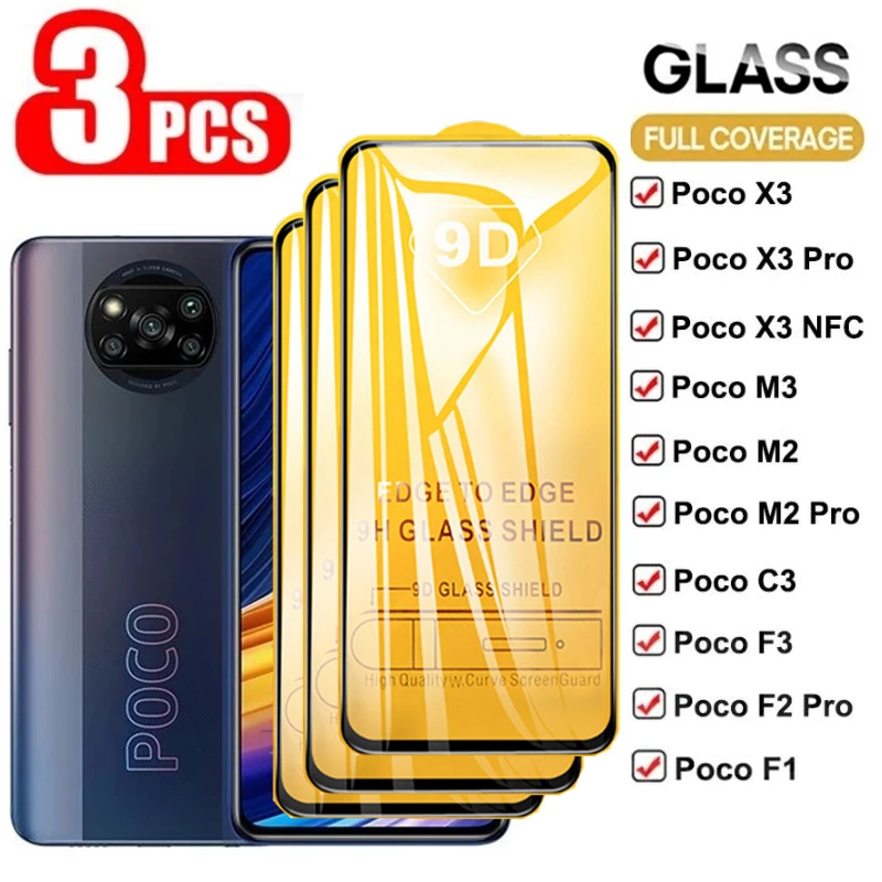 9D 3 шт. Защитное стекло для Xiaomi Poco X3 Pro NFC F3 M3 M4 F2 полное покрытие Закаленное стекло Защитная пленка для экрана чехол