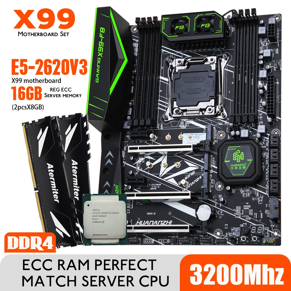 Комплект материнской платы HUANANZHI X99 F8, Intel Xeon E5 2620 V3, DDR4, 2011 дюйма, 16 ГБ = 8 Гб * 2 шт., память 3200 МГц, ECC NVME SATA3
