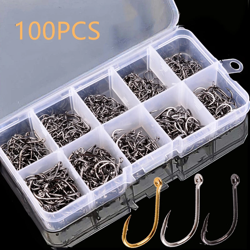 Посылка включает в себя: набор рыболовных крючков-100 шт.