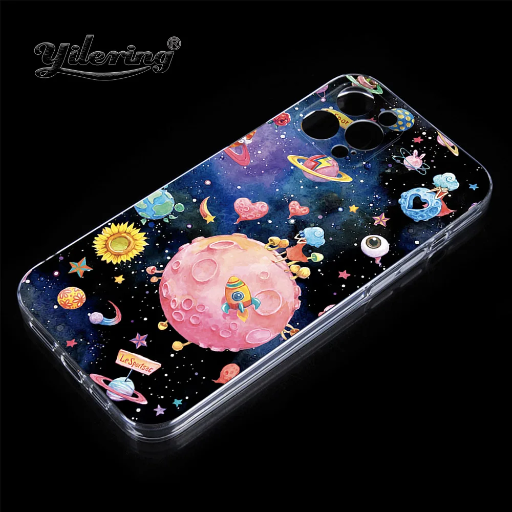 Модный мультяшный детский чехол с космосом для iPhone 11 12 13 Pro XS MAX mini XR X 8 7 Plus SE 2, мягкий чехол для iPhone 13 12 11