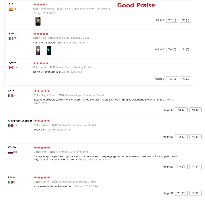 очень крутой за такую то цену увлажнитель.доставка очень быстрая.все идеально.только хотелось бы,чтобы подсветка выключалась совсем,но там 2 режима,а вот 3 нет,чтобы выключить свет вообще,но это мелочи.продавцу огромное спасибо!