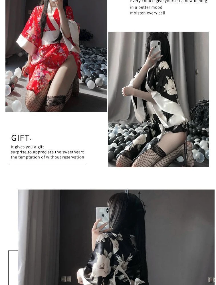 Посылка включает в себя: японское кимоно, Халат + пояс + стринги + носки в сеточку