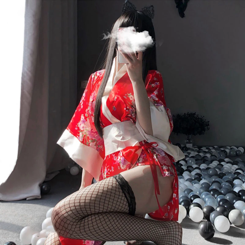 Японское кимоно, пикантный Косплей-костюм, традиционный стиль, женские костюмы для косплея, юката, пижамы, мягкий Шелковый ремень, пикантный красный