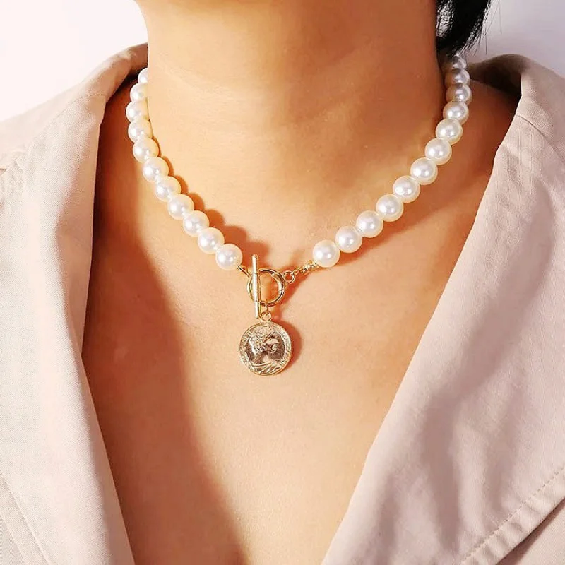 Женское Ожерелье-чокер с бусинами, классическое винтажное ожерелье золотого цвета с имитацией жемчуга и застежкой-пряжкой, Подарочная бижутерия, 2022