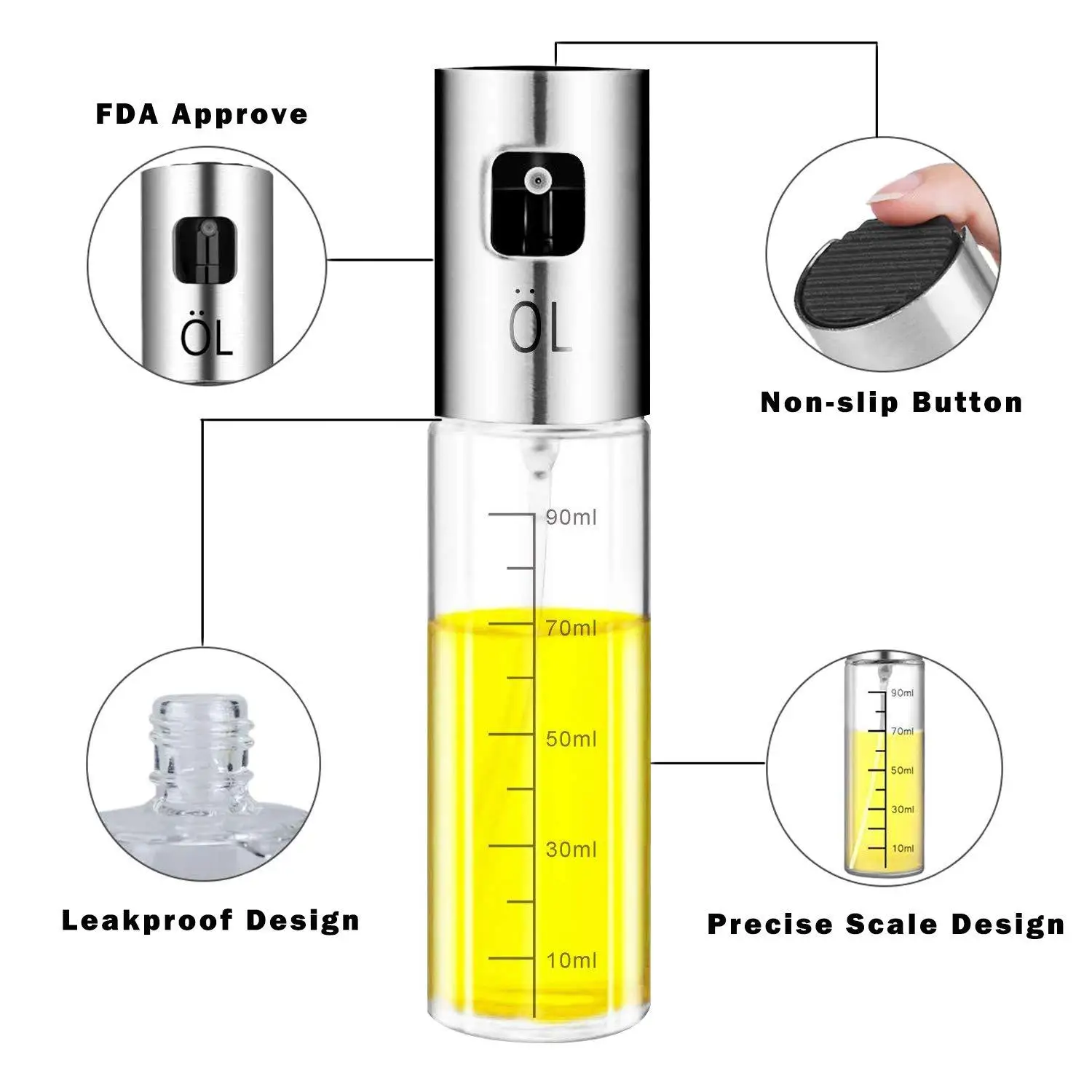 ● Подходит для масла, уксуса, соевого соуса, лимонного сока или вина. Для первого использования необходимо несколько раз сжимать насос.● Это идеальное спрей-тип масло с уксусом бутылки, вместо использования кисти для смазки во время жарки, жарки, выпечки и приготовления пищи, и не содержит никаких вредных пропеллеров или химических веществ.● Легко чистить, отвинтить крышку, просто налейте бутылку горячей водой и капелькой мягкого моющего средства, а затем нажмите кнопку управления распылением, не перемешивая.