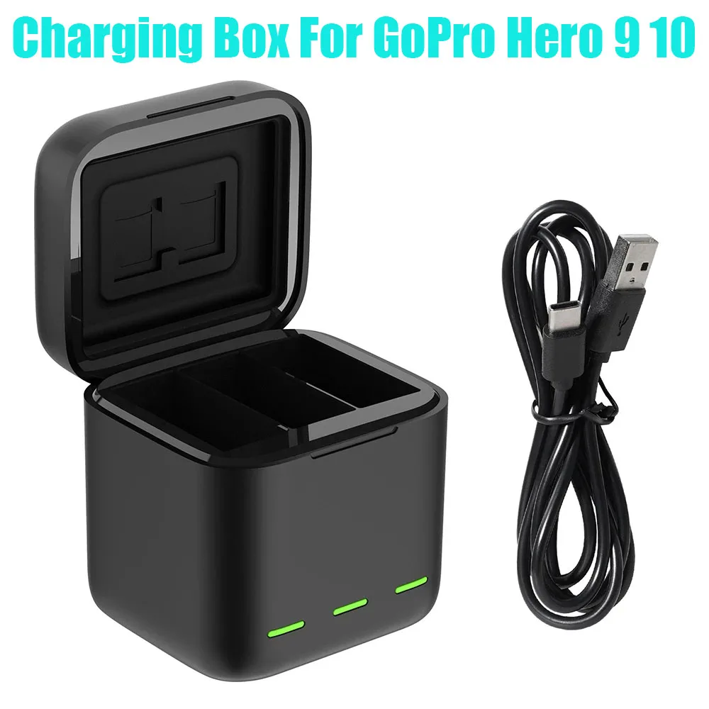 Зарядная Коробка GoPro Hero 10 9 3 способа светодиодный светильник зарядное устройство для батареи TF карта для хранения зарядная коробка для GoPro Hero 9 10 черный аксессуар