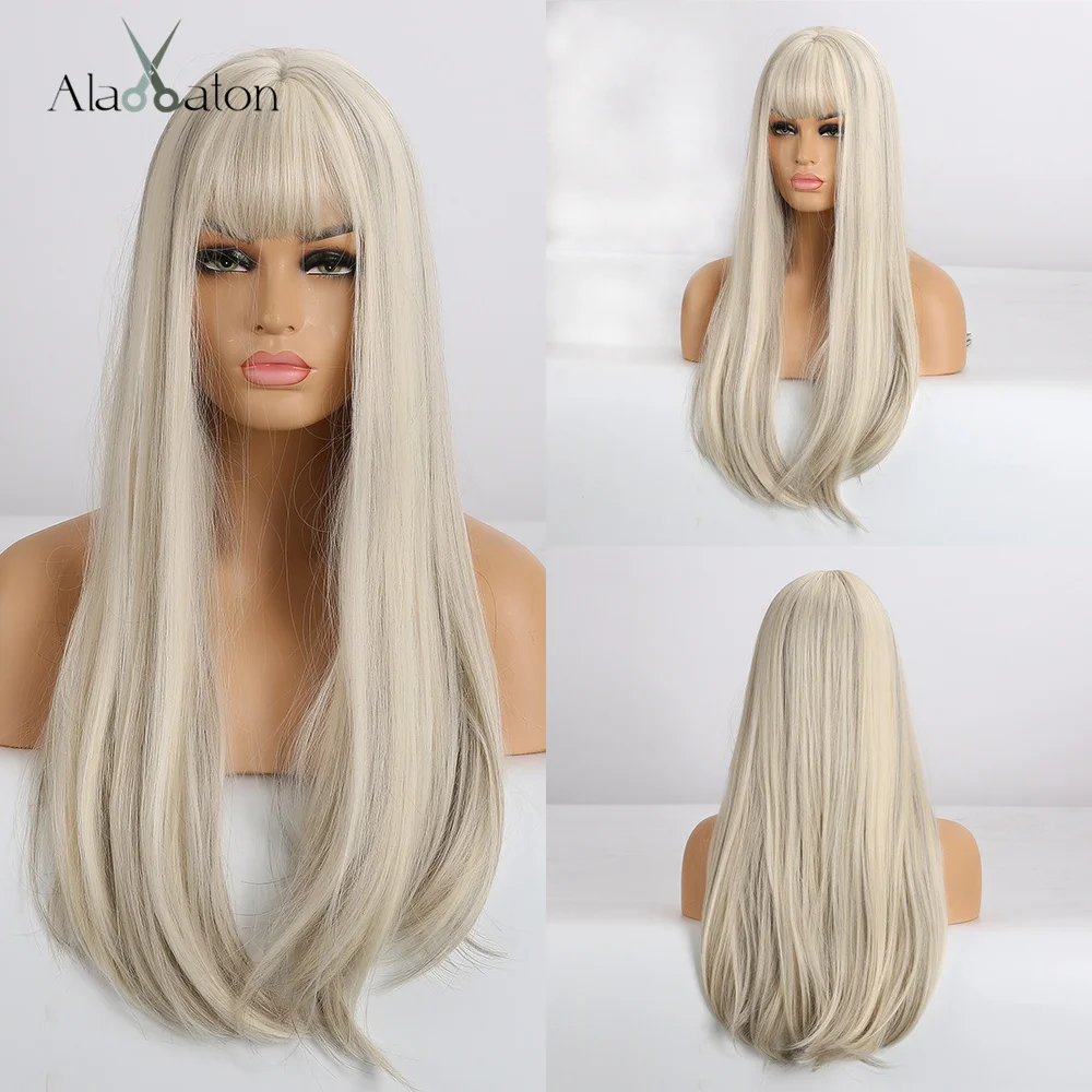 Парики ALAN EATON светлые с челкой, термостойкие синтетические, с т...
