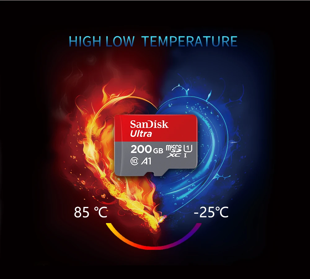 Карта памяти SanDisk Extreme high-speed mobile microSDXC UHS-I является водонепроницаемой/ударопрочной, устойчивой к холоду и рентгеновскому излучению. Вы можете наслаждаться приключением, не беспокоясь о долговечности карты памяти.