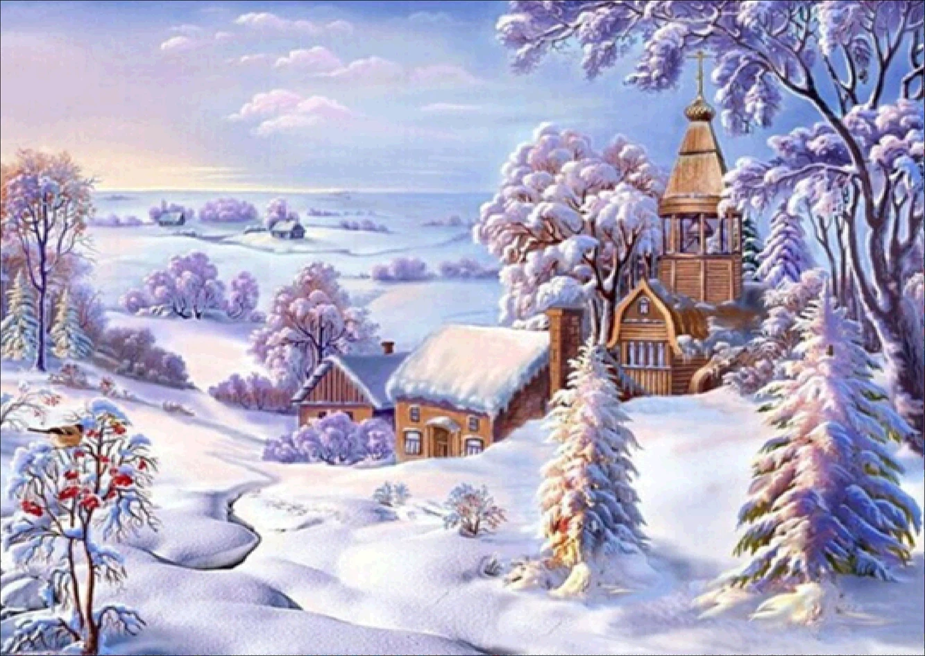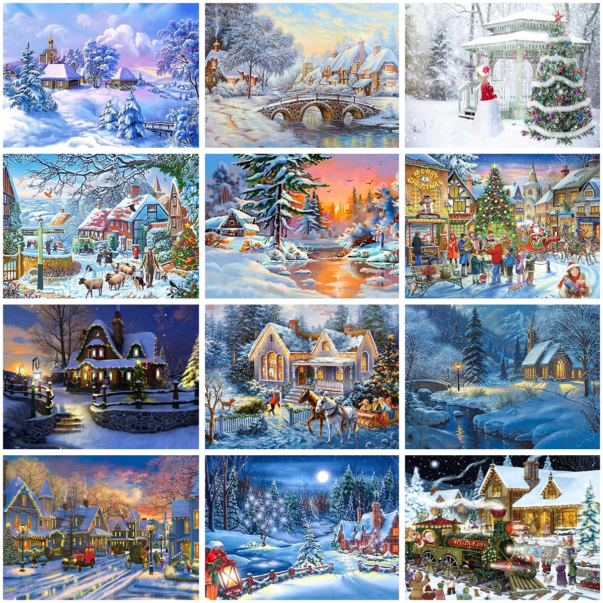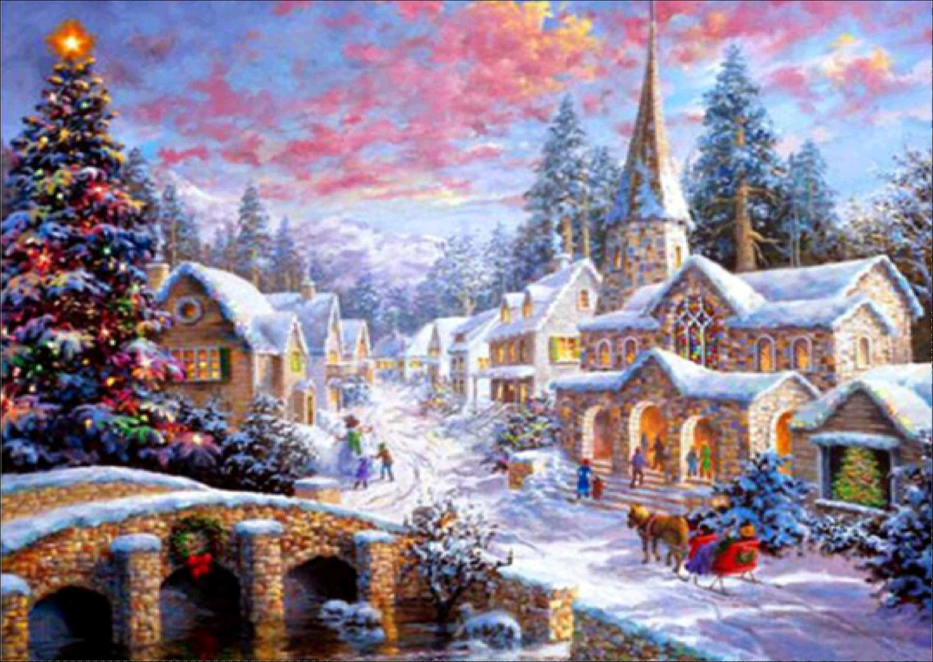 Алмазная 5D картина сделай сам, Рождественский пейзаж, полная вышив...