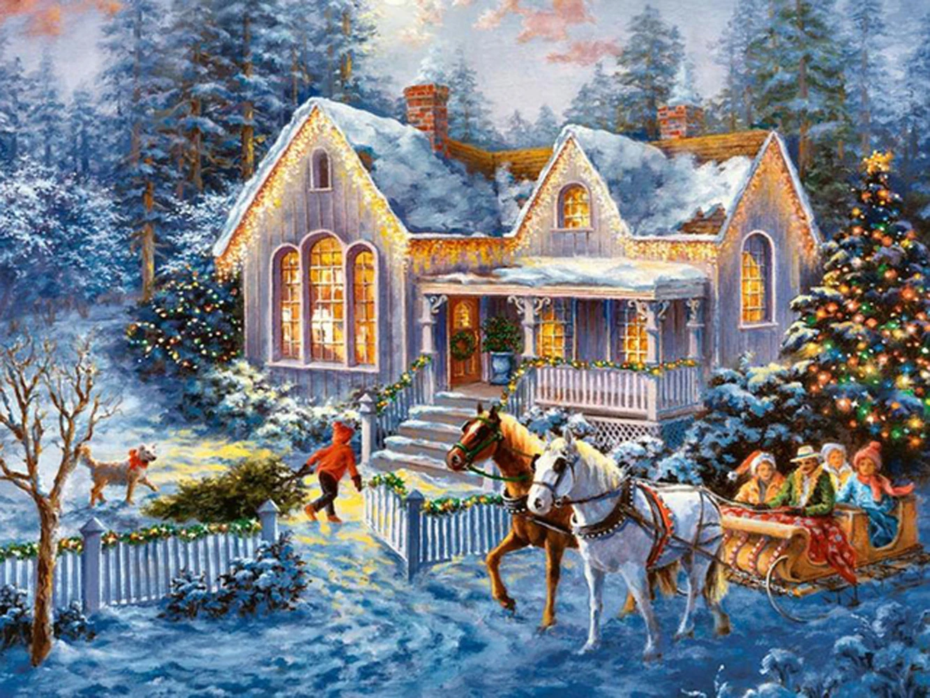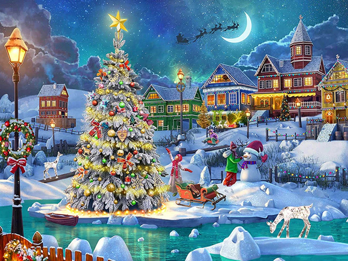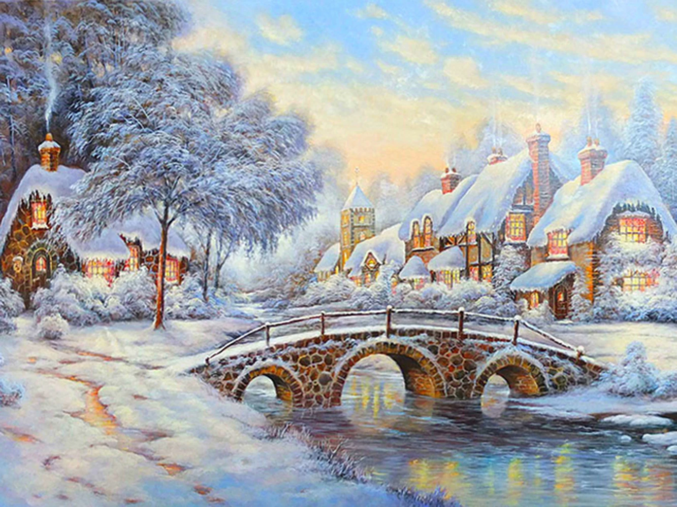 Алмазная 5D картина сделай сам, Рождественский пейзаж, полная вышив...