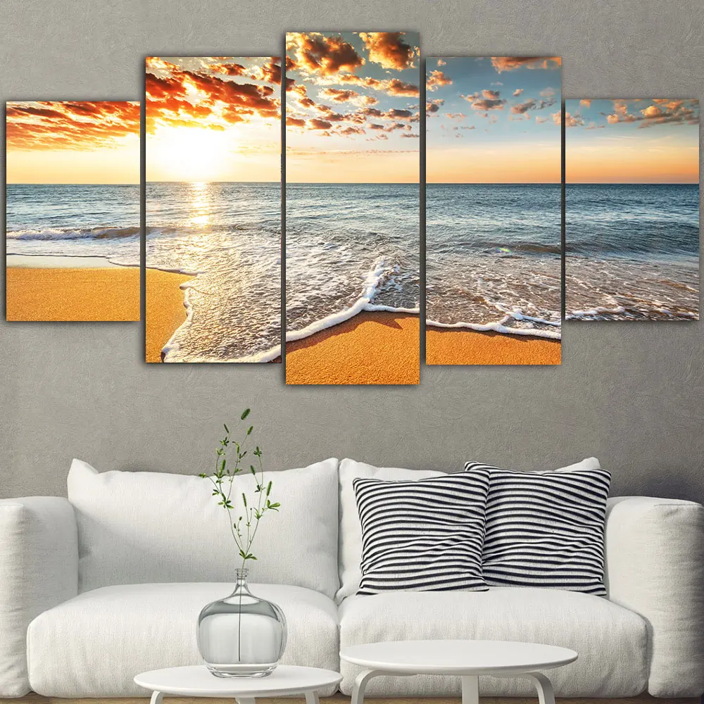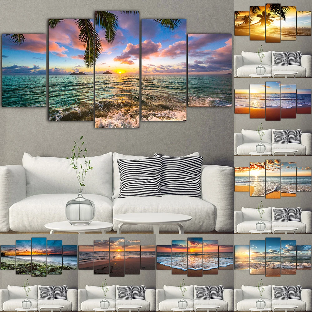 Современные настенные картины с морским пейзажем, 5 шт., Пляжная, морская, Океаническая Картина на холсте, настенное искусство, ландшафтные плакаты, принты для декора гостиной
