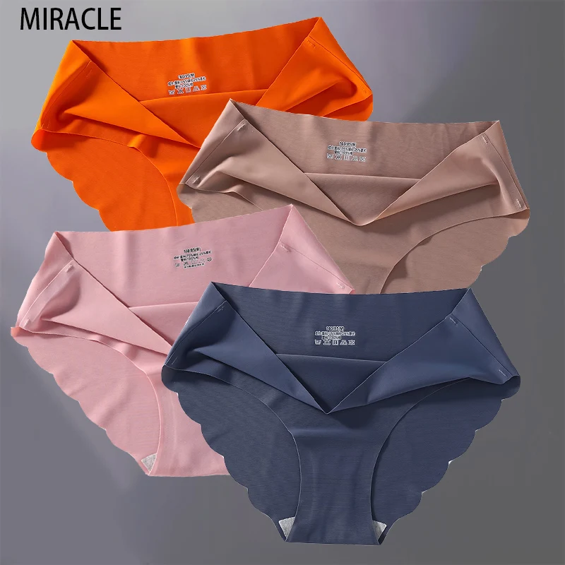 Бесшовные трусики для женщин 4 шт.лот, простые трусики, шелковое же...