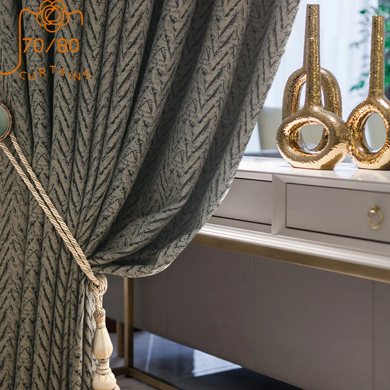 Светильник кие Роскошные американские серые Жаккардовые Плотные затемняющие шторы для гостиной и спальни товары на заказ